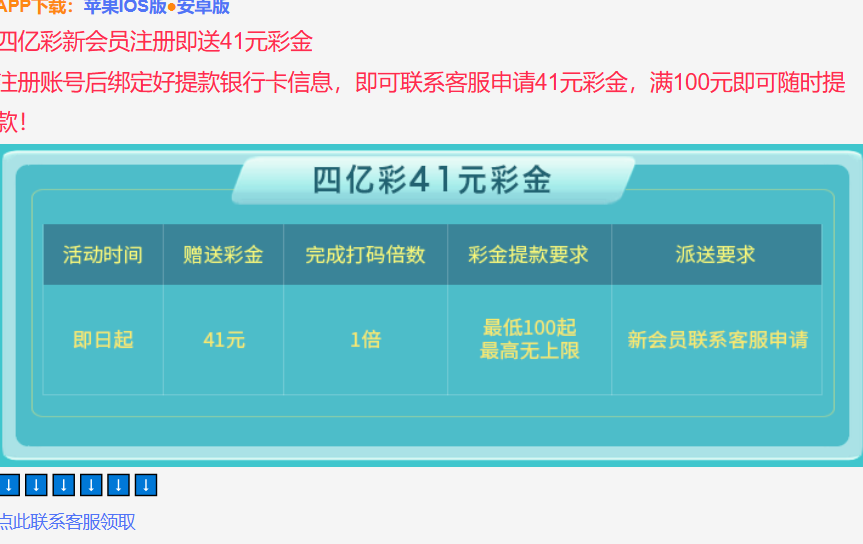 活动详情:新会员注册即送41元彩金