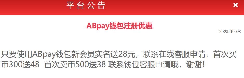 活动详情:只要使用ABpay钱包新会员实名联系在线客服申请送28元
