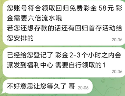 直接说申请58彩金,两到三个小时到